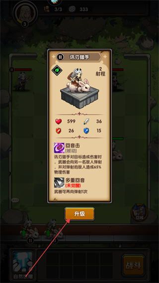 3、当获得的同等级的同种角色数量达到三个就可以进行升级进化,点击角色进入信息页面点击下方的升级按钮进行进化。