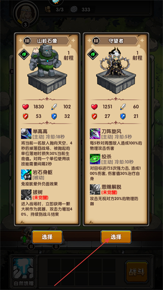 4、每个角色进化时都有两种不同的进化方向,一种时防御血量突出,一种是攻击伤害非常高,可以选择其中一种进行进化。