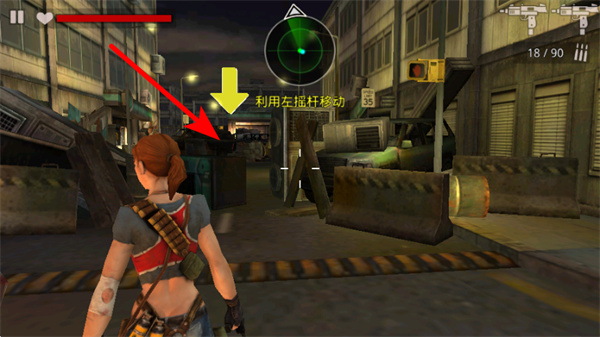 1、进入界面后,借助摇杆实现角色移动,移动实现是探索场景的关键操作,实现后可不同区域穿梭,搜寻资源。