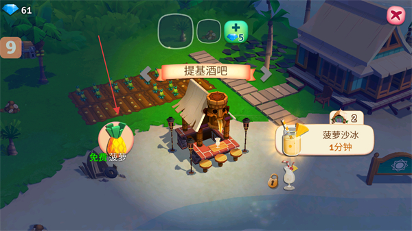 3、在酒吧拖动菠萝放入酒吧内进行菠萝冰沙的制作。
