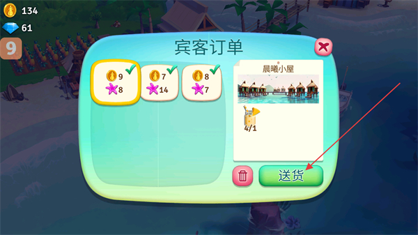 4、点击港口的女孩,把做好的菠萝冰沙送出去进行售卖。