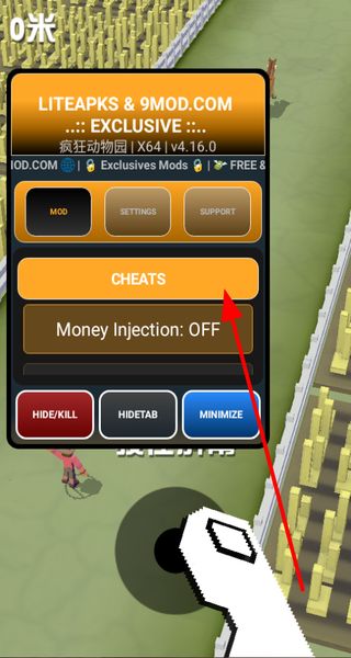 4、开启作弊功能,选择金钱注入等作弊选项,获取资源,助力游戏发展,提升捕捉动物的体验。