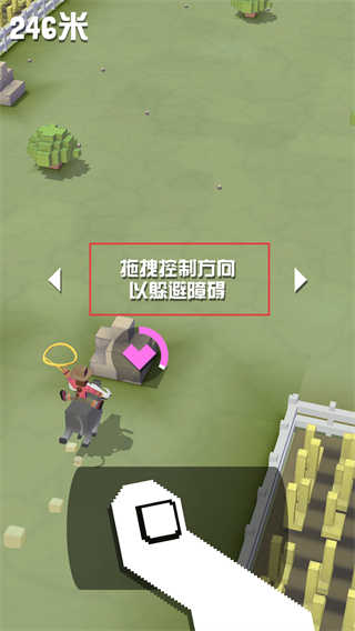4、骑乘过程中出现石块等障碍时,拖拽底部操作区域,向左或向右拖动即可控制移动方向,通过调整位置避开障碍,避免碰撞中断游戏。