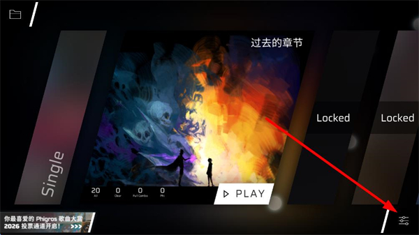 1、进入Phigros界面,找到右下角的设置选项并点击,进入设置相关页面。