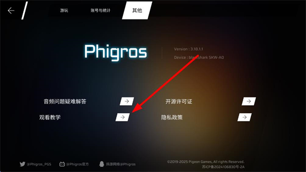 4、进入教程界面后,即可查看游戏玩法教学内容,了解Phigros的新手操作与规则。