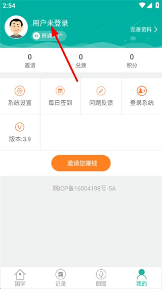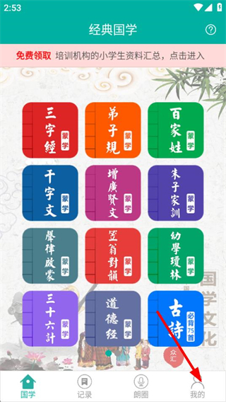 1、在经典国学页面,点击右下角我的选项,进入个人页面。