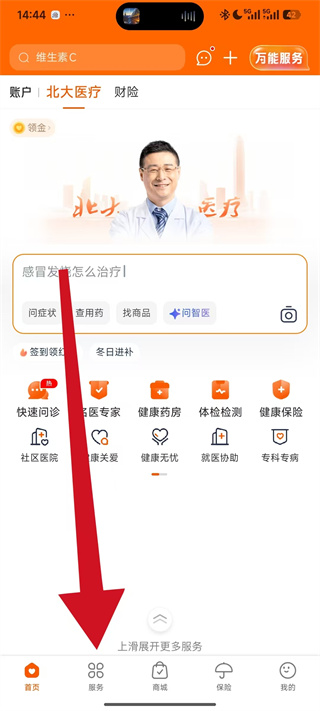 1、打开平安好医生APP,在首页点击底部导航栏的服务,进入服务页面。