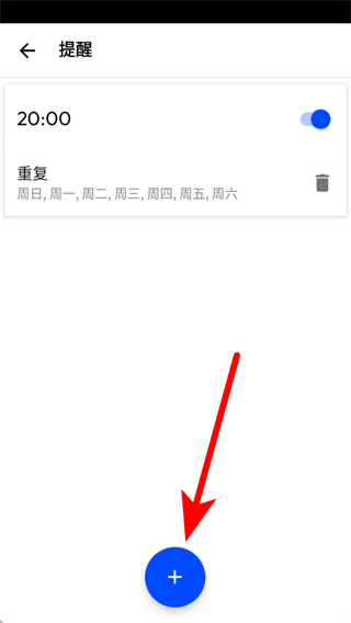 4、在提醒设置页面,点击页面底部的蓝色加号按钮。