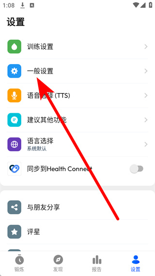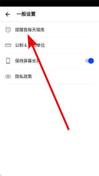 3、在一般设置里点击提醒我每天锻炼,进入提醒设置页面。