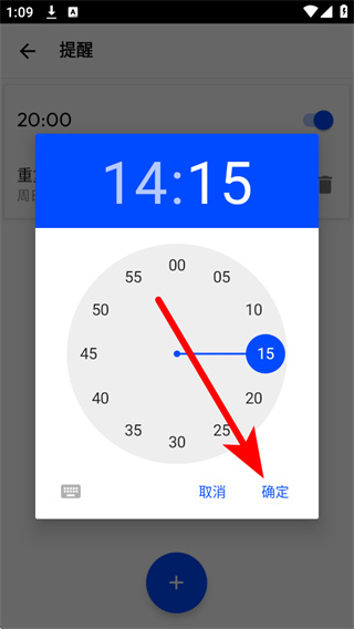 5、在弹出的时间选择器中设置目标提醒时间,最后点击确定,即可设置。