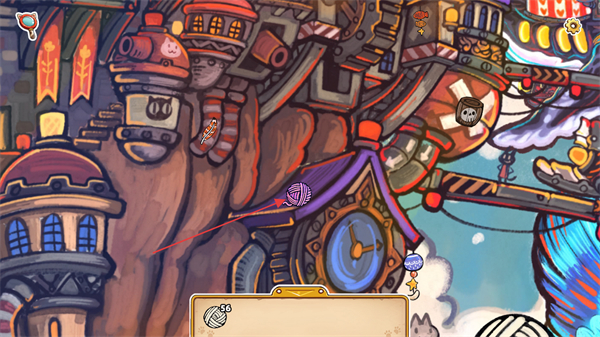 4、进入游戏场景后,需收集场景中的毛线球等道具,收集后可积累资源,当前显示已收集的毛线球数量,持续收集可推进游戏进度。