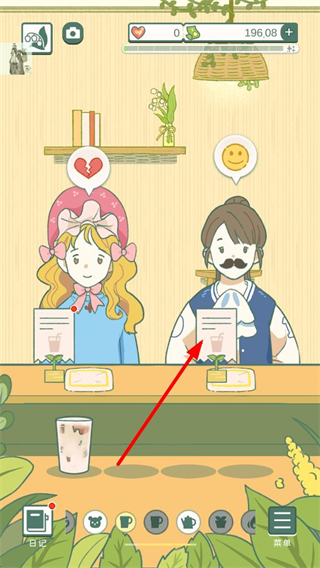 1、进入茶屋界面后,点击顾客手持的订单,查看其需求如新鲜叶茶,此时需准备对应食材。