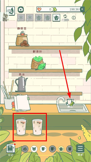 3、制作完成后,茶饮会出现在操作台,将其交付给对应的顾客,顾客满意后会支付金币,可用于解锁更多食材或升级茶屋设施。