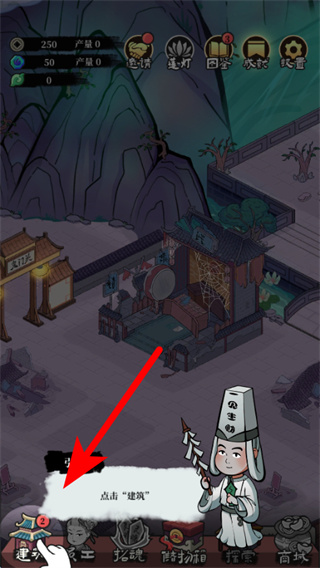 1、进入地府日记游戏后,点击底部的建筑按钮,打开建筑操作界面。