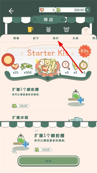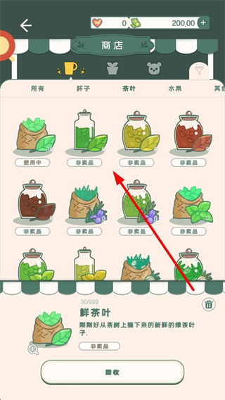 3、在商店界面的顶部分类栏中,找到茶叶选项,点击切换至茶叶分类页面。