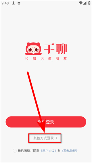 1、打开千聊,在登录页面点击其他方式登录,弹出登录方式选择弹窗。