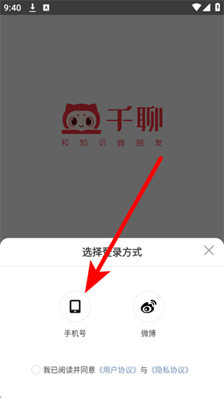 2、在选择登录方式弹窗中,点击手机号,进入手机账号登录页面。