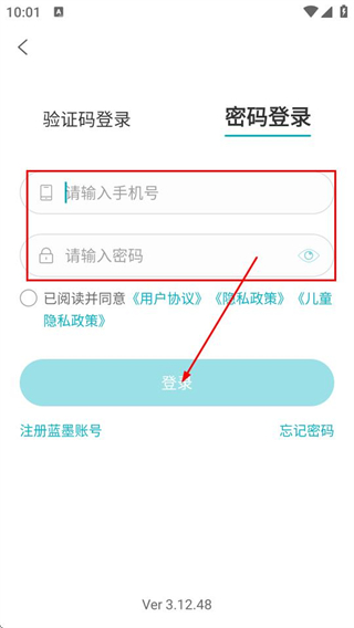 4、在密码登录界面,填写手机号和密码,点击登录完成云教材账号登录。