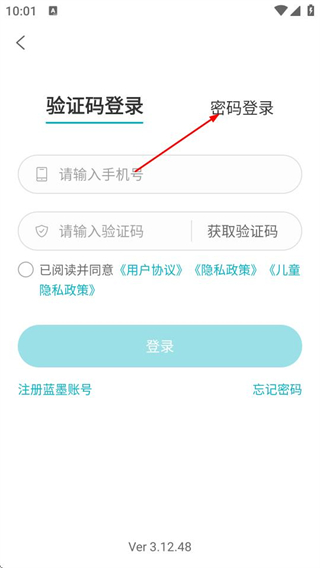 3、在登录页面,点击密码登录选项,切换至密码登录界面。