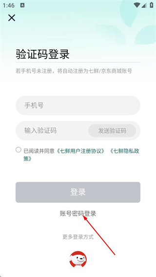 3、在登录选择页面,点击账号密码登录选项,切换至账号密码登录界面。