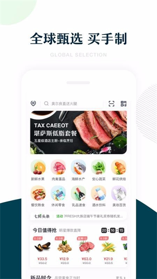 7fresh生鲜超市是专注全球精选生鲜与农产品的线上购物平台,汇集各地鲜美食品与优质食材,从全球各地精心甄选上好产品,涵盖果蔬、肉类、海鲜等多元品类,支持用户随心挑选、便捷下单,依托完善冷链供应链保障商品新鲜度,让用户足不出户即可购买到全球优质生鲜,享受新鲜、放心的采购体验,成为生鲜食材采购的贴心载体。