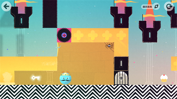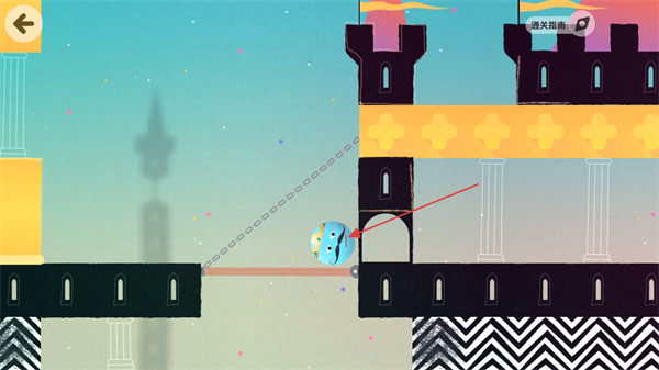 3、处于关卡界面时,划动屏幕操控角色在平台与链条连接的路径上移动,向城堡方向推进,探索关卡内容。