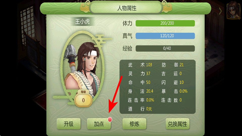 1、进入人物属性界面后,点击加点按钮,可对角色属性进行分配,这是提升角色能力的关键操作,合理加点能增强战斗实力。