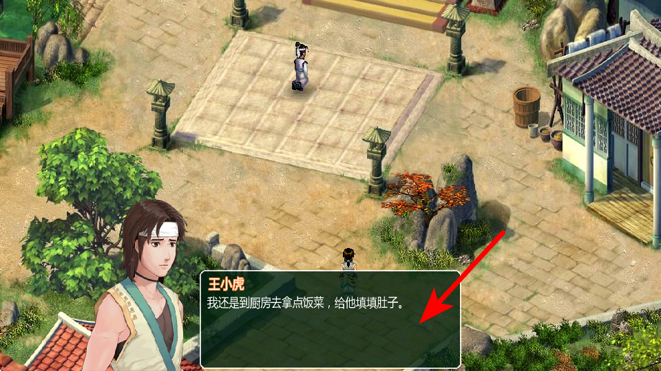 3、根据王小虎的对话提示,前往厨房拿取饭菜,跟随剧情指引完成对应操作,能推进任务流程,解锁后续内容。