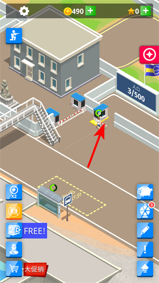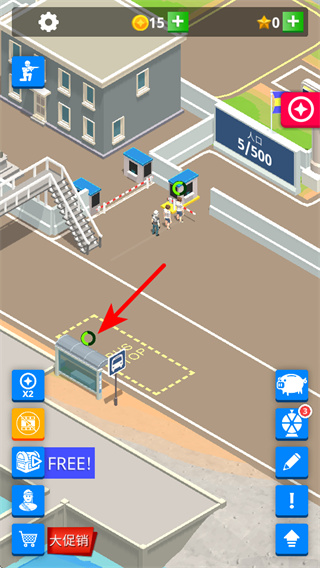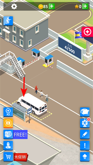 3、点击箭头指引的公交区域,触发公交载客的流程,这是增加入口人流量的核心操作,按提示互动即可推进进度。
