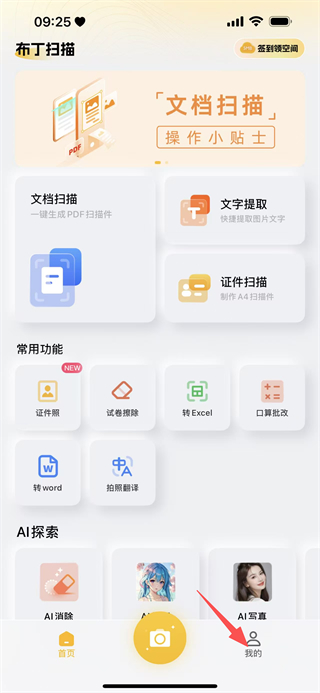 1、在布丁扫描首页,点击底部的我的选项,进入个人页面。