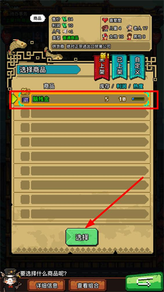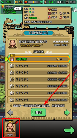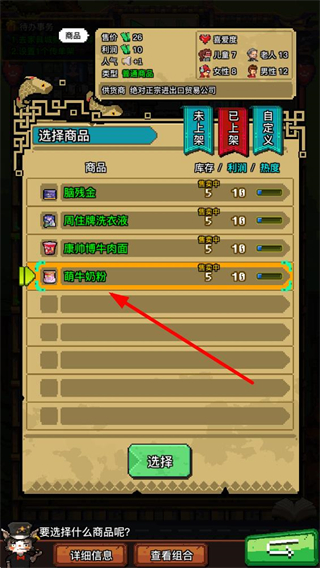 5、采购完成后返回店铺,将新商品上架到货架,解锁更多货架与商品,逐步扩大店铺的经营规模。