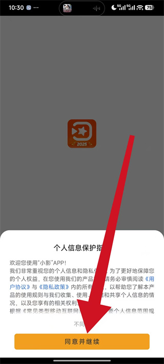 1、打开小影,在弹窗中点击同意并继续,进入小影主界面。