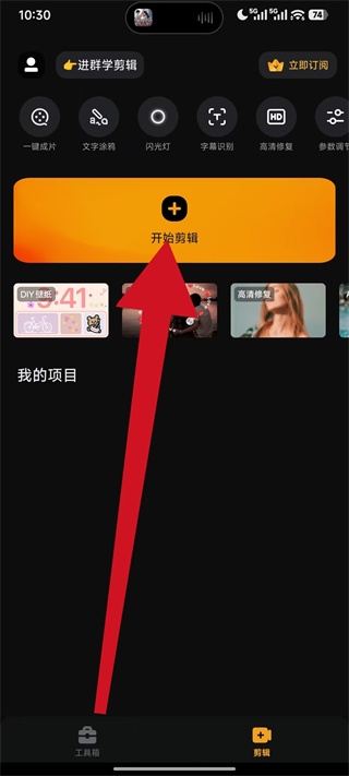 2、在主界面中点击开始剪辑,进入素材选择页面。