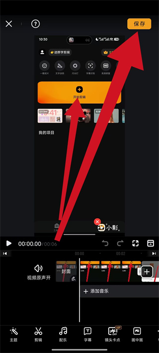 4、在视频编辑页面编辑的操作后,点击页面右上角的保存,完成视频制作。