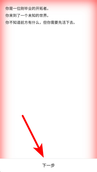 2、找到箭头标注的下一步按钮,点击它推进剧情,这是进入游戏主场景的基础操作,按提示操作即可继续。