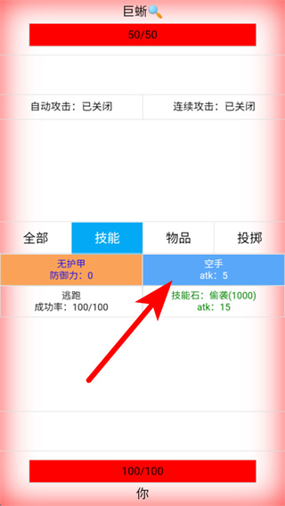 4、点击箭头指向的技能空手选项,这是使用对应技能的必要操作,按指引操作即可对目标释放技能。