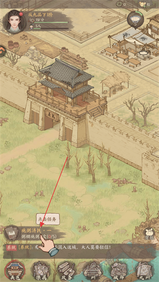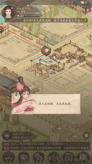3、在当前游戏主界面中,找到显示的施粥济民一任务,按提示点击该任务区域,即可开启该任务的相关流程。