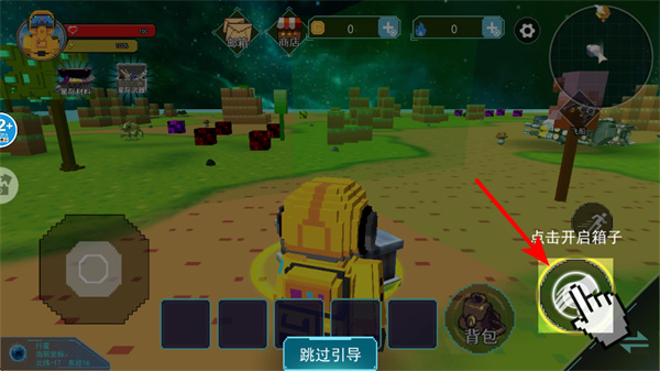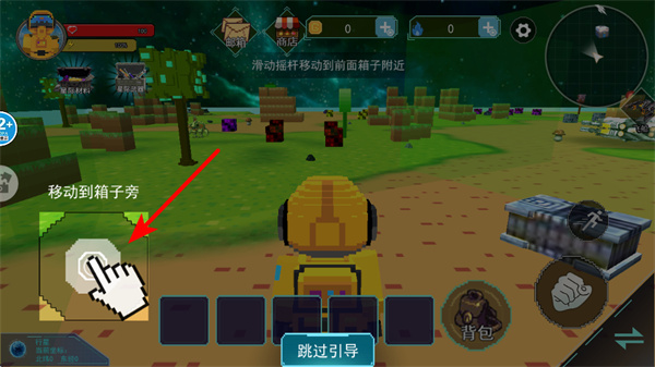 1、进入游戏后,操作界面里的对应区域,这是控制角色移动的关键操作,完成操作后角色会向箱子方向行进。