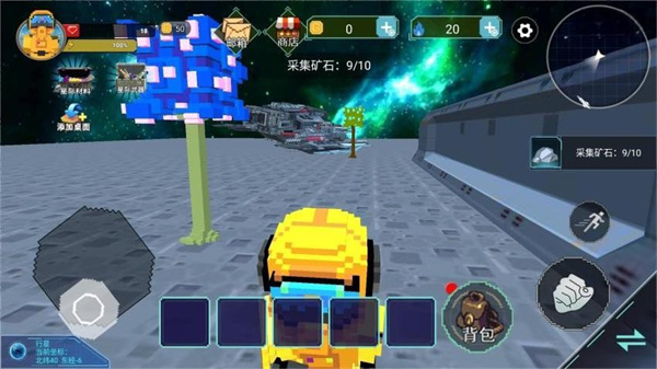 可逐步升级背包容量,方便探索中携带更多资源与物品;商店提供挖掘工具、武器、服饰等多种商品,可挑选适配的太空作战武器,应对外星威胁与探索挑战。