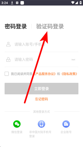 2、在登录页面点击验证码登录,切换到短信验证码登录界面。