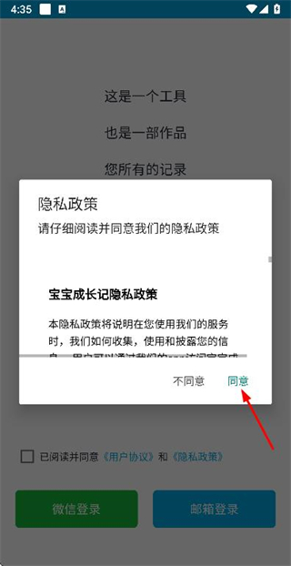 1、在隐私政策弹窗中点击同意按钮,完成隐私政策确认。