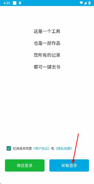 2、在登录选择页勾选协议后,点击邮箱登录选项,进入邮箱登录页面。