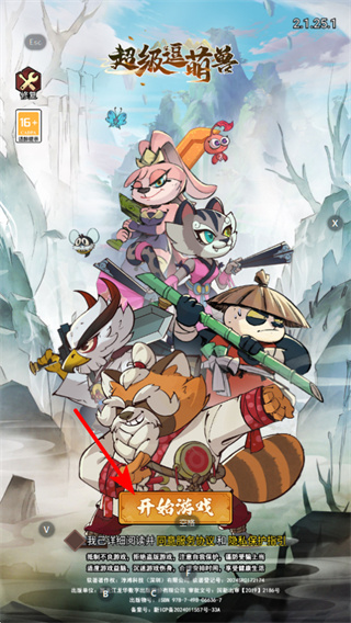 1、在游戏启动界面,点击红色箭头指向的开始游戏按钮,即可进入超级退暗兽的冒险流程。