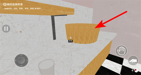 3、切换到配料场景后,点击珍珠容器,这是拿取配料的关键步骤,操作后获取制作珍珠奶茶所需的珍珠原料。