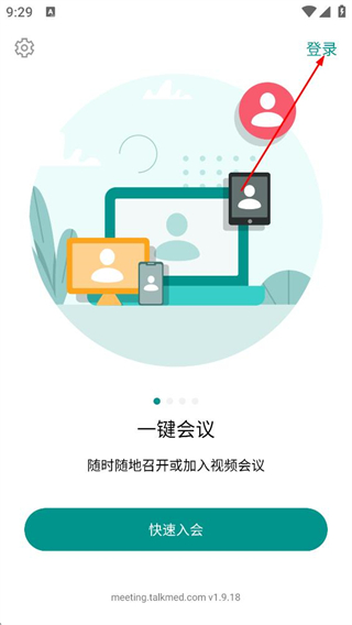 1、在一键会议页面,点击右上角的登录,进入账号登录的操作页面。