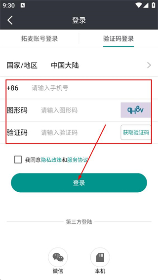 3、在界面,填写手机号、图形码、验证码,点击登录,完成账号登录。