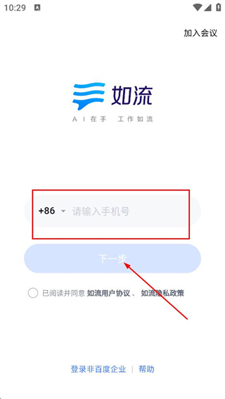 2、在手机号输入页面,将对应的号码填入输入框,点击下一步。