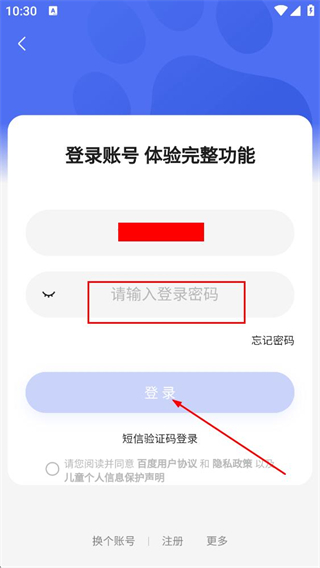4、在账号密码登录界面,填写登录密码,点击登录,完成账号登录。