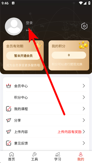 2、在个人页面,点击登录区域,进入登录页面。