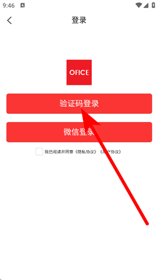 3、在登录页面,点击选择验证码登录,弹出手机号与验证码填写框。
